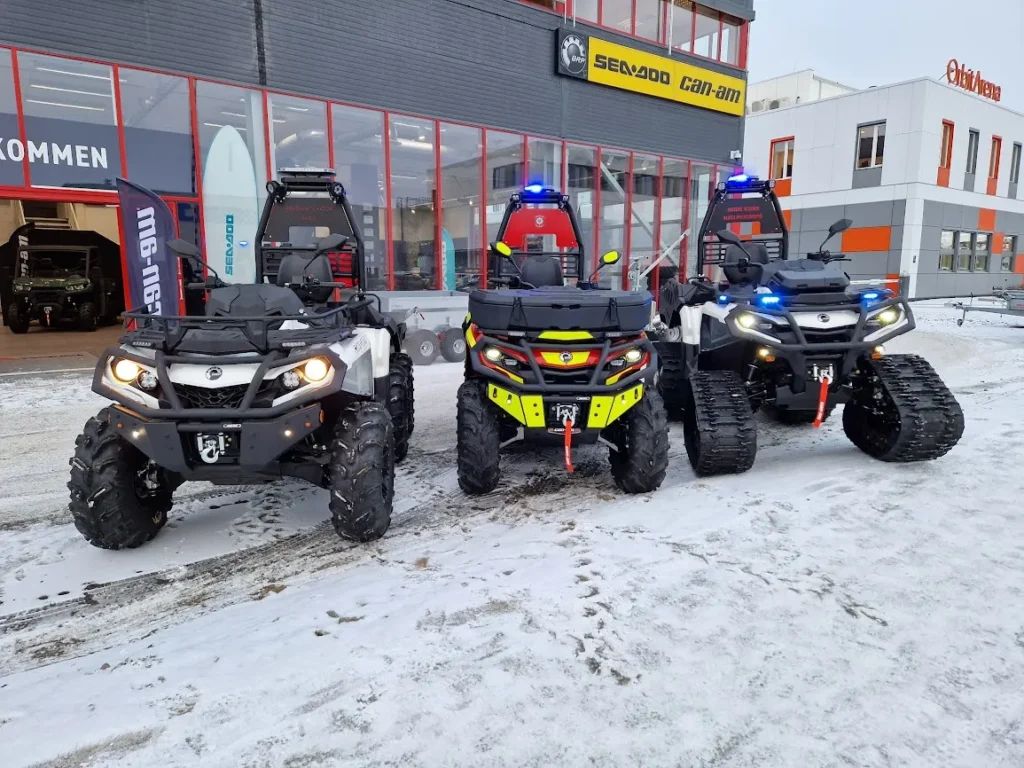 forsvaret. ATV-er og SSV-er som leveres herfra kan registreres som godkjente rednings- og utrykningskjøretøy, og utstyres med alt fra hengere og SAR-kit til spesialbygde redningsløsninger.