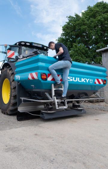 Gjødselspreder til traktor med stor kapasitet som drar nytte av teknologiske fremskritt utviklet for feltavlinger