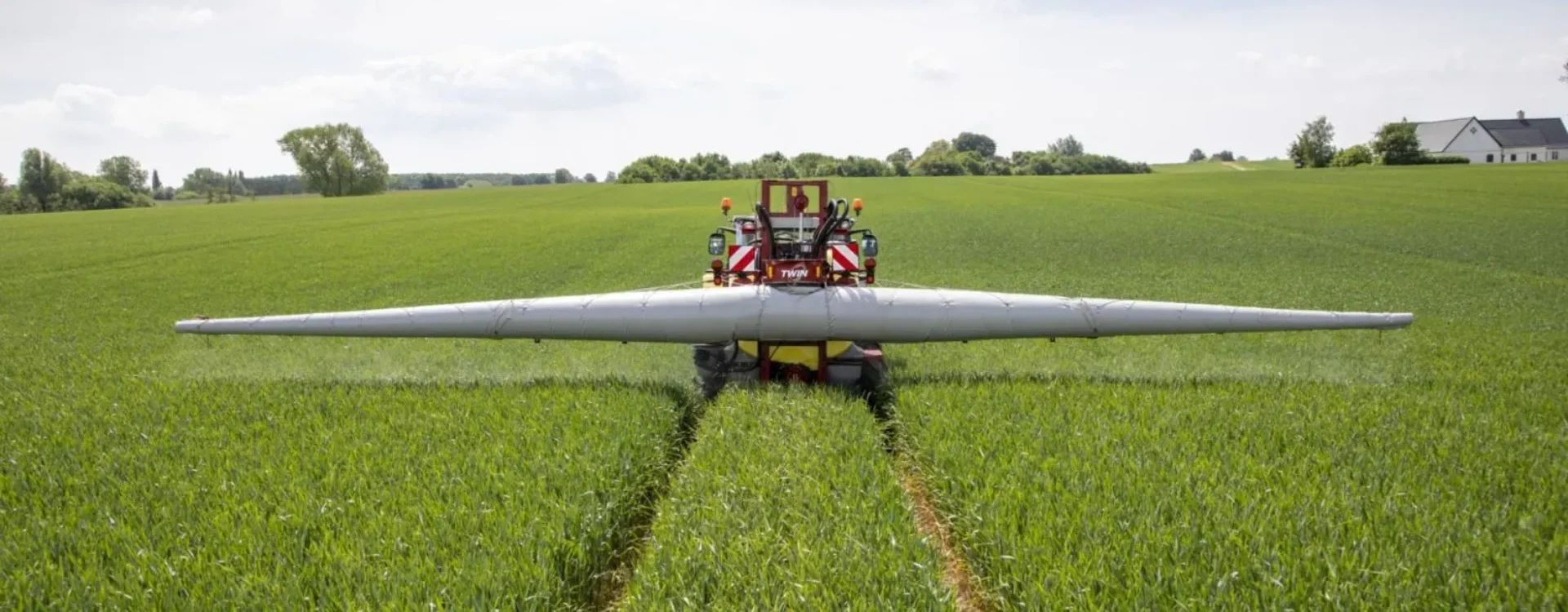 TWIN er en luftassistert bom der luftstrømmen kan justeres i hastighet og vinkel. Poenget er enkelt: dråpene får “bakkekontakt” i stedet for å bli med vinden.