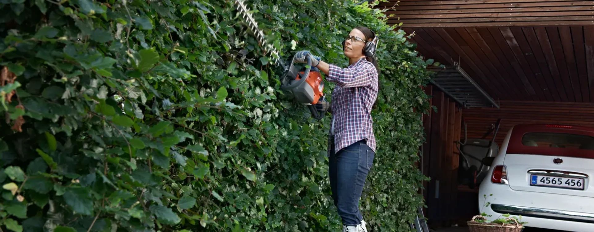 Husqvarna hekksakser er designet for sikkerhet, komfort og fleksibilitet. Justerbare bakre håndtak gjør det enkelt å klippe både sider og topp, mens forlengede kniver gir større rekkevidde. Stoppbryteren med automatisk retur sikrer at hekksaksen alltid er klar til bruk.