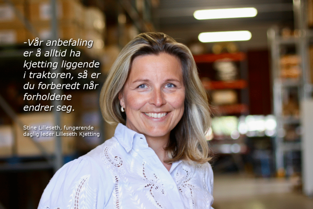 – Mange traktorførere tror fortsatt kjetting er påbudt hele vinteren. Det viktigste er at du har dem med dersom du kan møte snø eller is. Vi anbefaler å alltid ha kjetting liggende i traktoren, så er du forberedt når forholdene endrer seg, sier Stine Lilleseth, daglig leder i Lilleseth Kjetting AS.