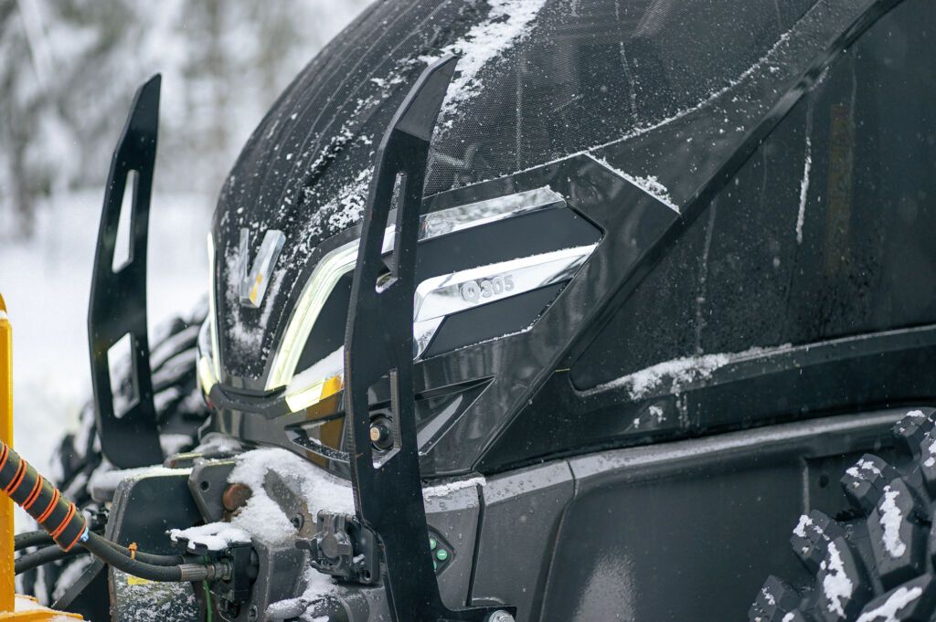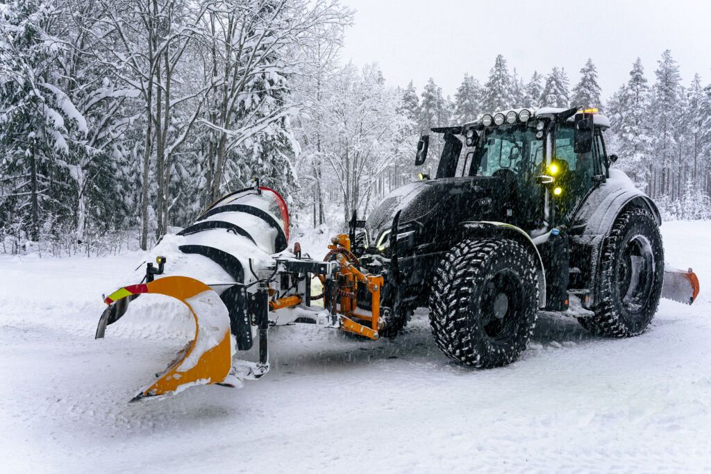 Øverby kjører en Valtra Q305, utstyrt med trykkskjær bak levert av Akershus Traktor FMG.