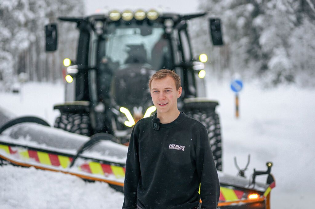 Herman Øverby jobber i Elverum Anleggservice og har ansvar for veivedlikehold i Sør-Østerdalen på oppdrag for Innlandet fylke. Når snøen kommer, er det ikke rom for faste klokkeslett.