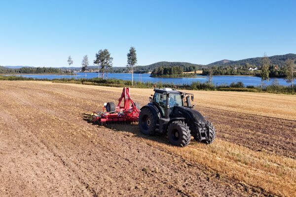 Mangerud tok nylig turen til Nord-Odal for å prøve ut en av de nyeste storsatsingene fra Valtra Q305 koblet sammen med en Pöttinger Terradisc 5001 skålharv. Sammen utgjorde de en imponerende kombinasjon av kraft og presisjon.