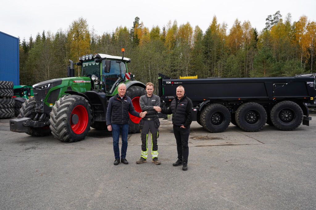 TOTEN: Håvard Gjestvang fra Gjestvang Gravservice har nylig fått levert en ny TOR 20T60, spesialbestilt og tilpasset massetransport etter egne ønsker. Overleveringen fant sted hos Akershus Traktor på Toten, med Torstein Sjåheim fra Akershus Traktor og Ståle Rennemo fra Trailer Systems til stede.