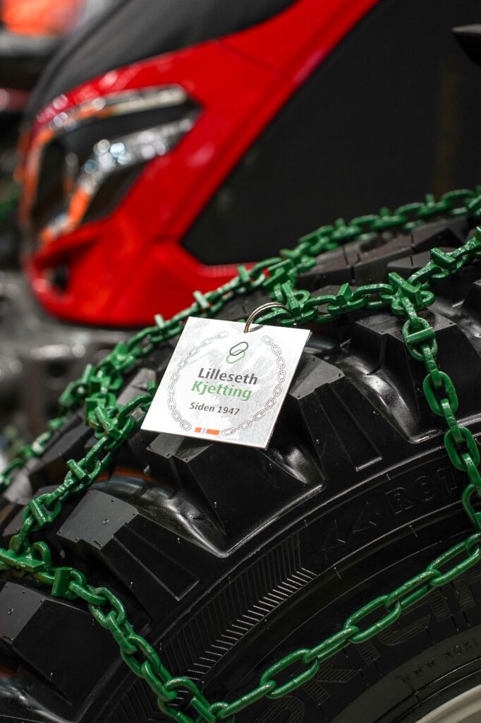 Det betyr at du alltid kan sjekke hvilke dekk kjettingen er tilpasset til – enten den ligger på låven, i traktoren eller i garasjen. Dette er nyttig når du har flere sett eller når du trenger å dobbeltsjekke før monteringen.