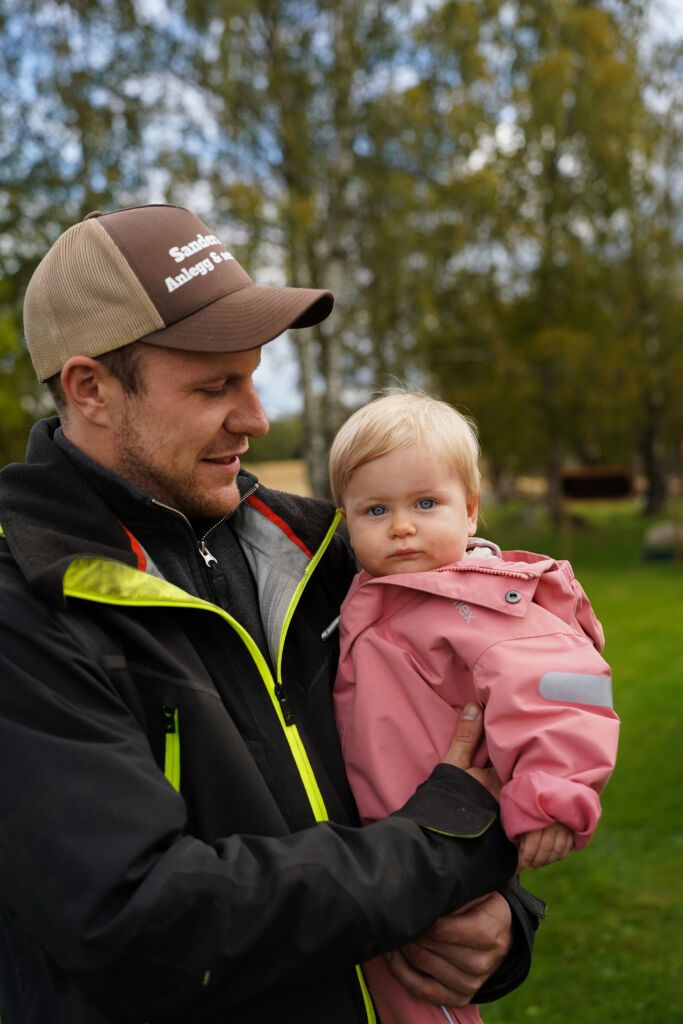 Vi har tatt en prat med Tage Sandersen, som for tiden er i foreldrepermisjon med datteren sin. Til daglig driver han Sandersen Anlegg & Service i Eidsvoll, et entreprenørfirma han startet i 2018.